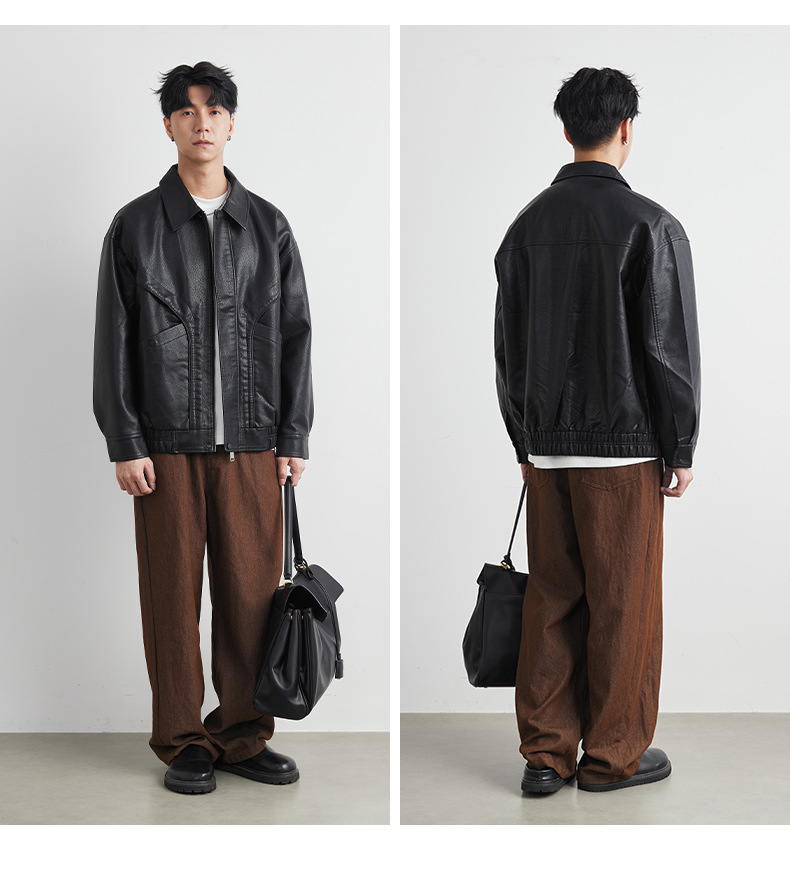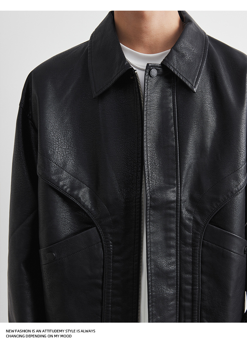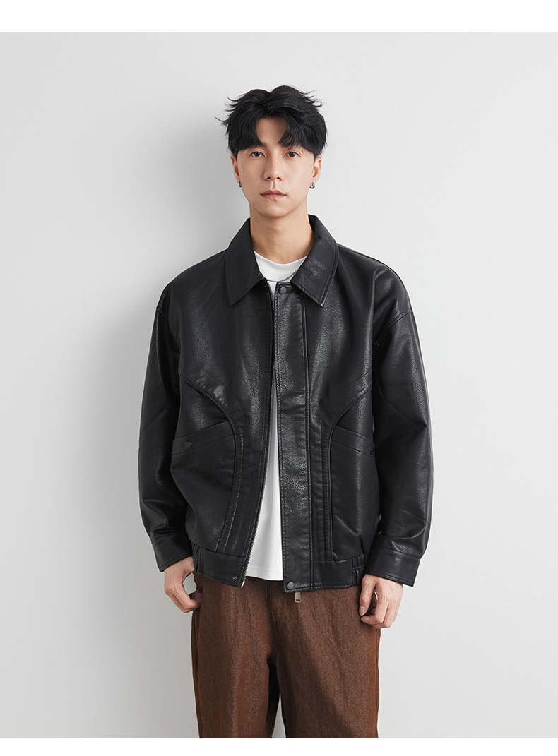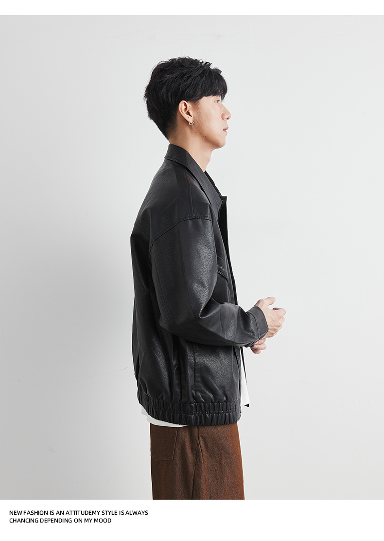 男士春秋機車皮夾克