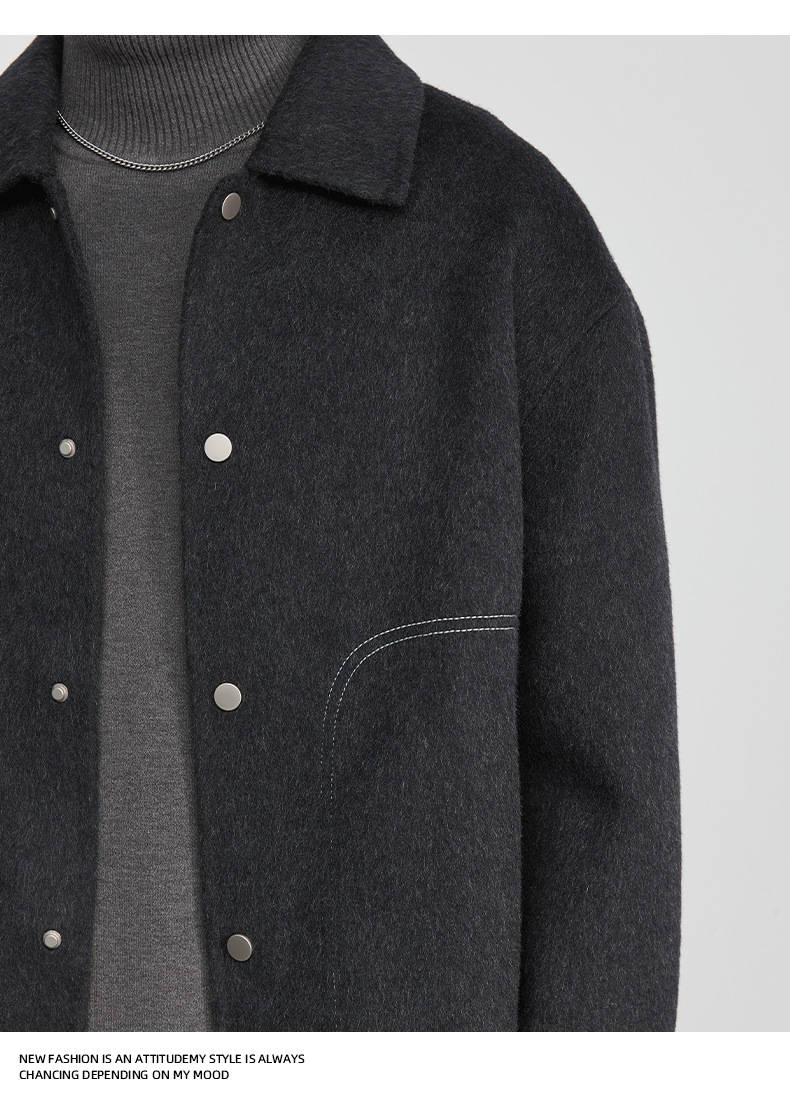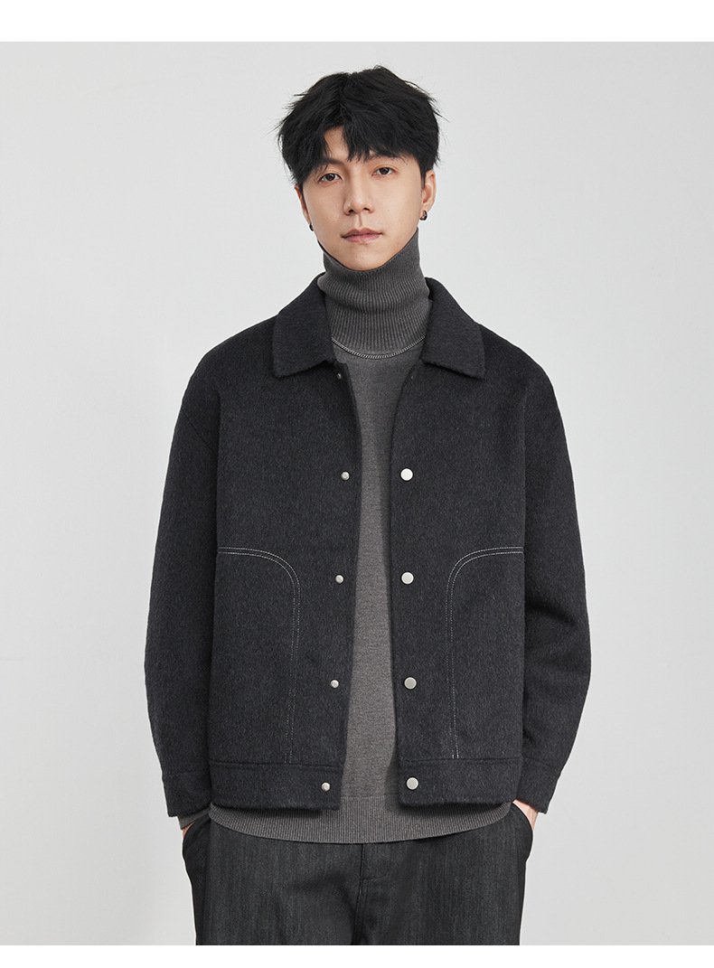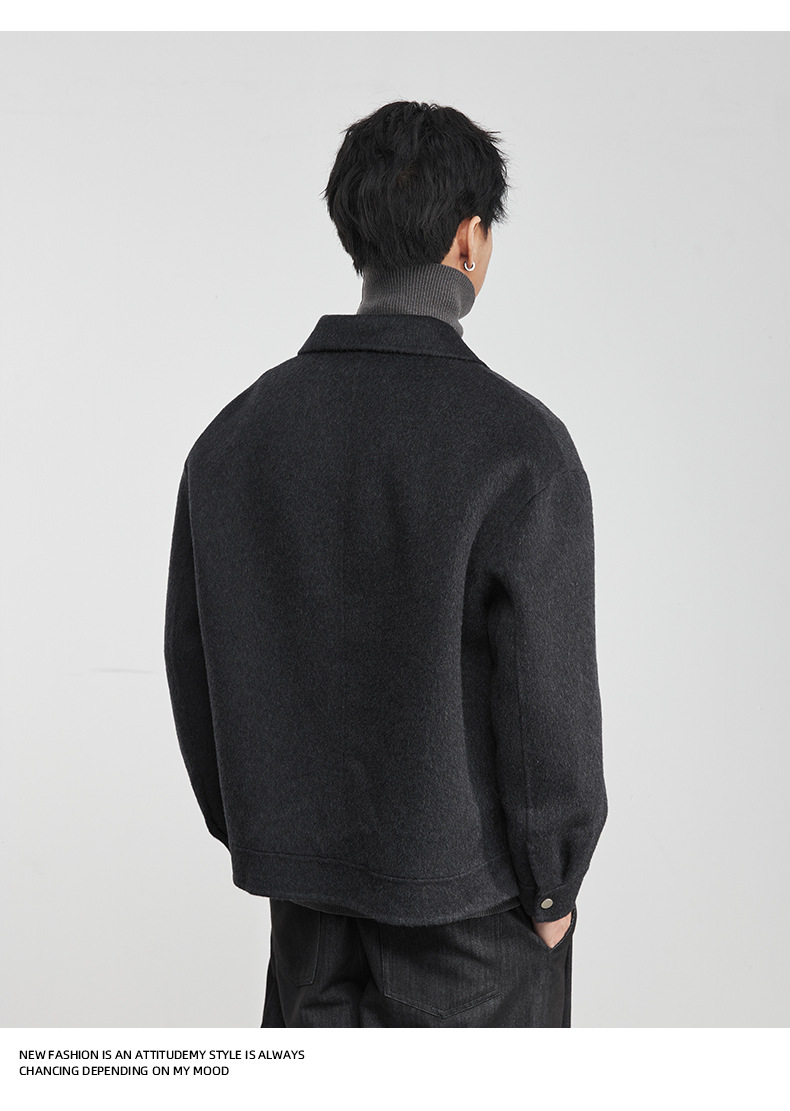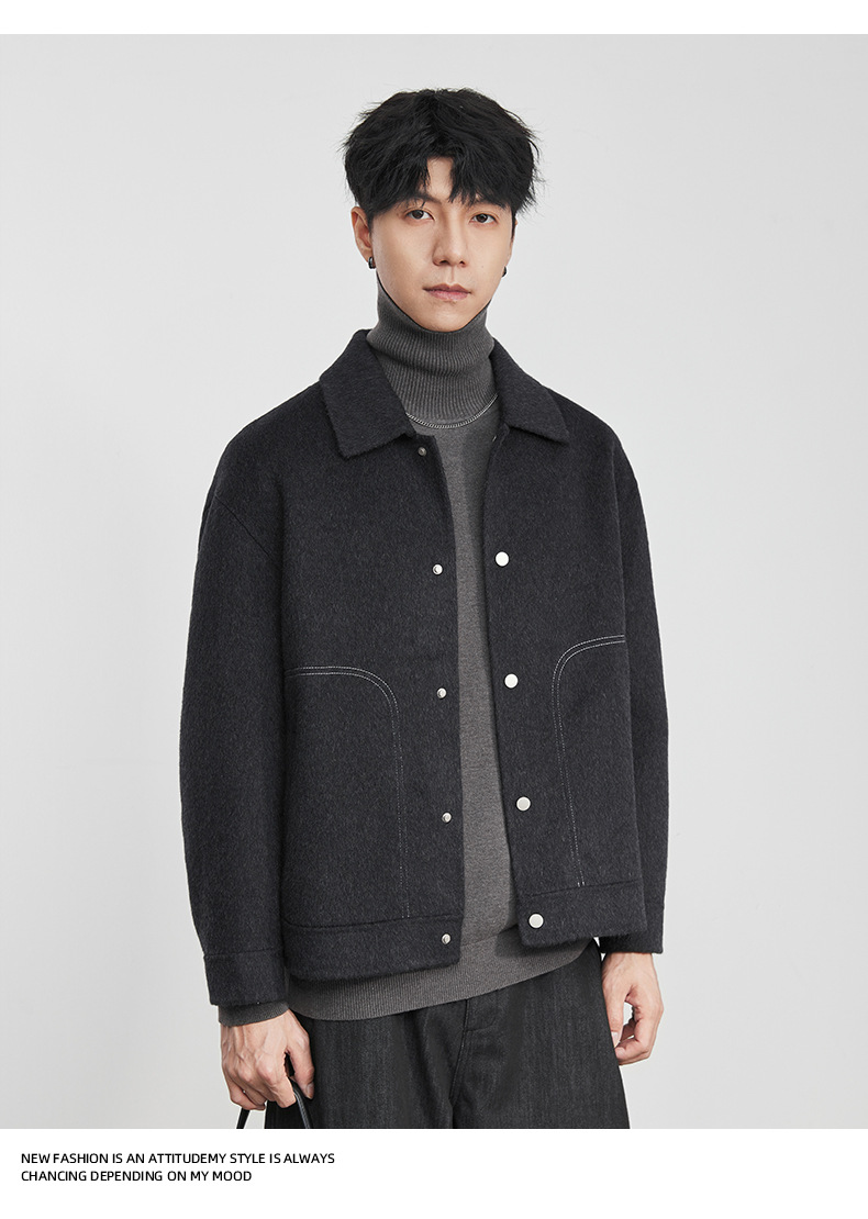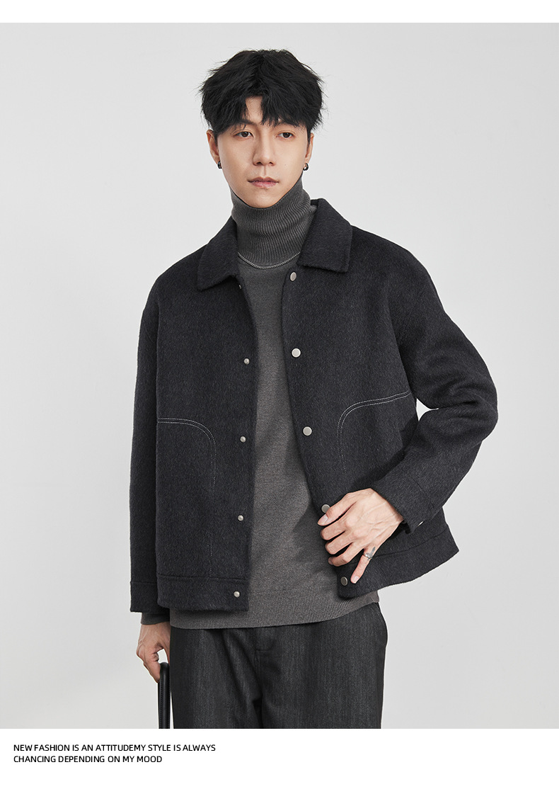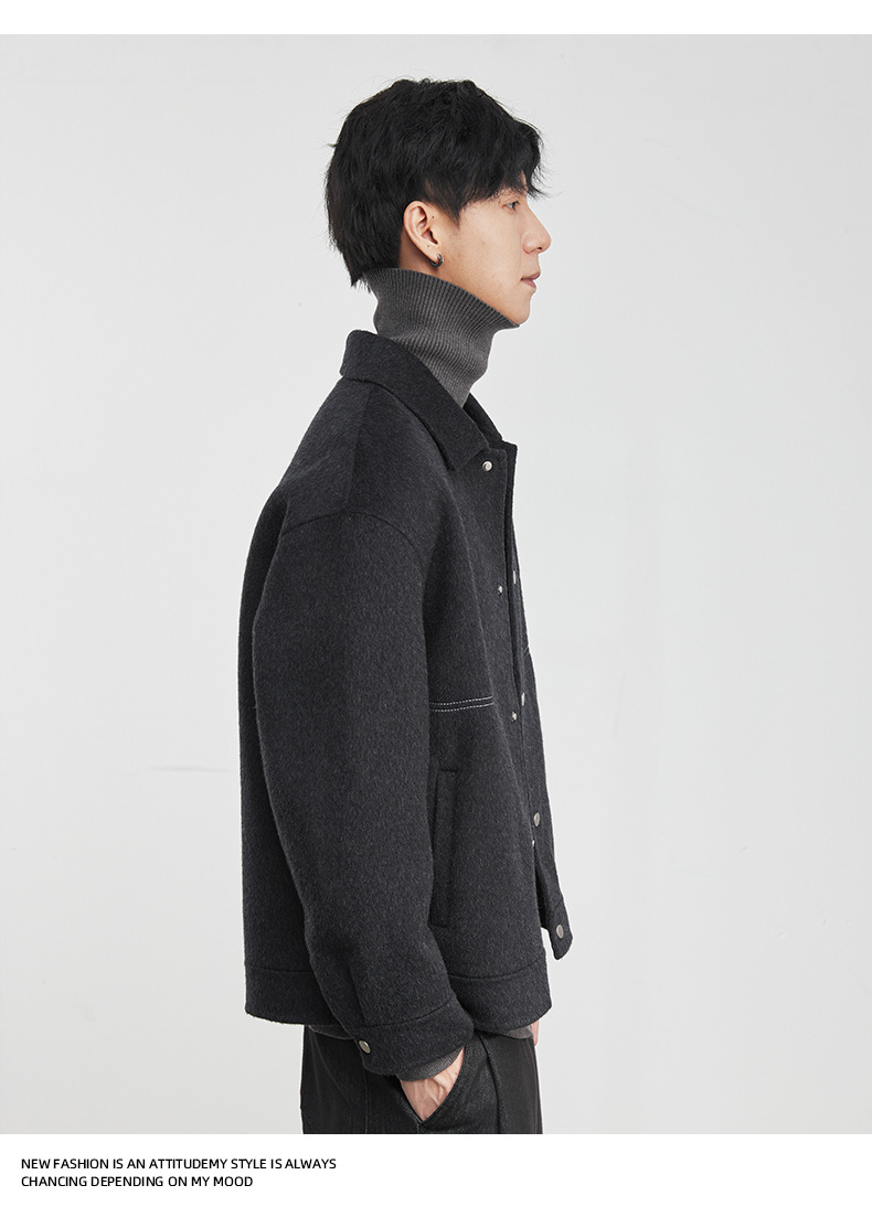 男士冬季明線翻領毛呢夾克外套