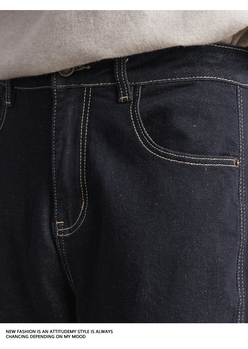 男士春秋重磅丹寧可選加絨直筒休閒褲