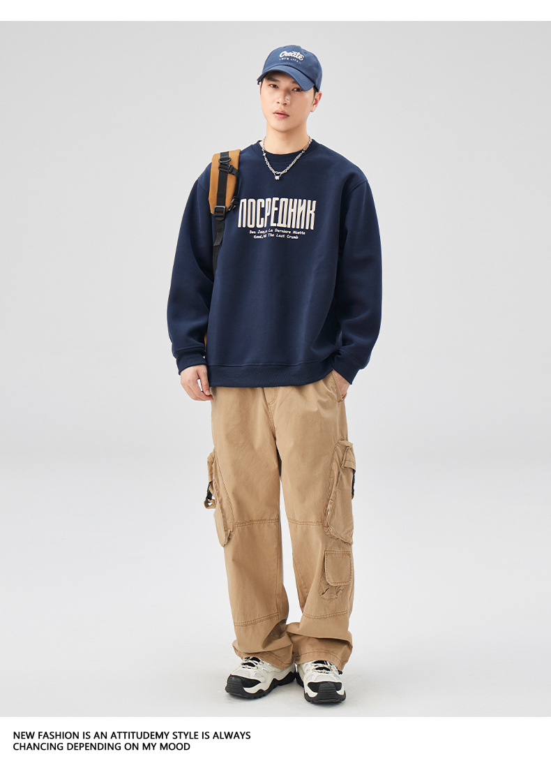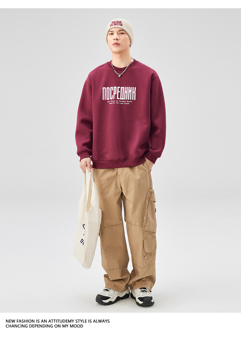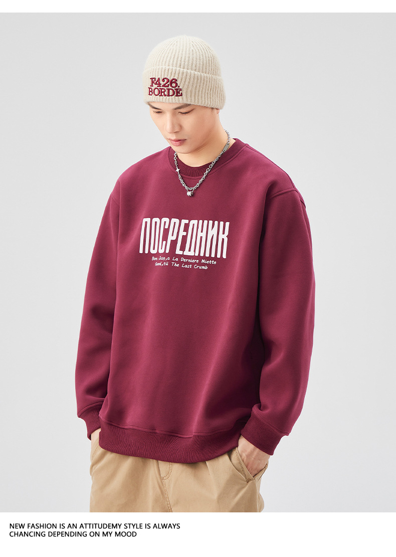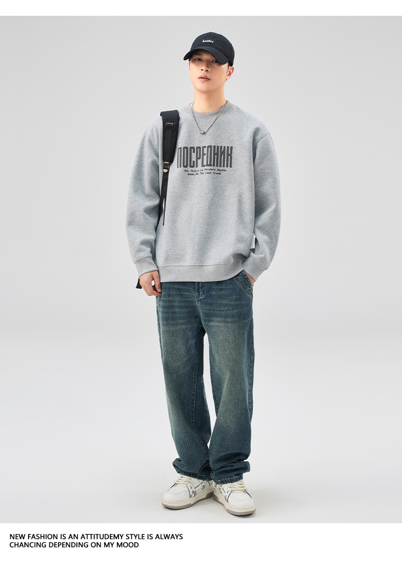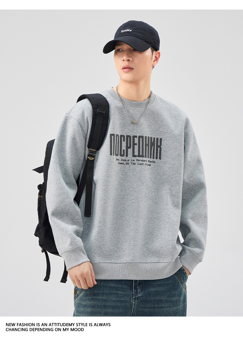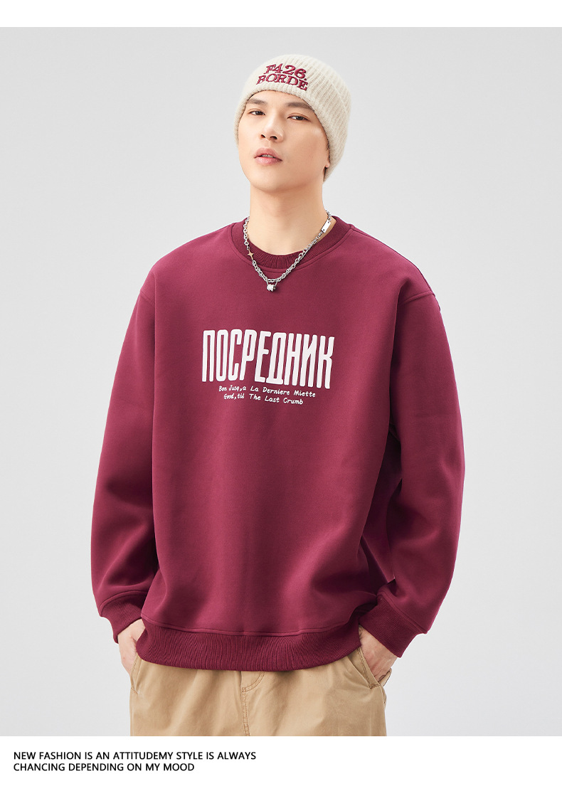 男士春秋420G美式無帽印花衛衣