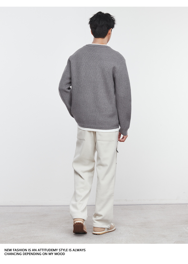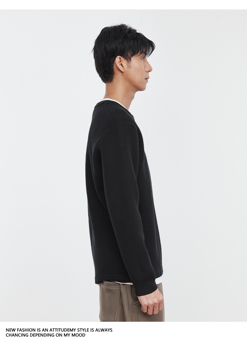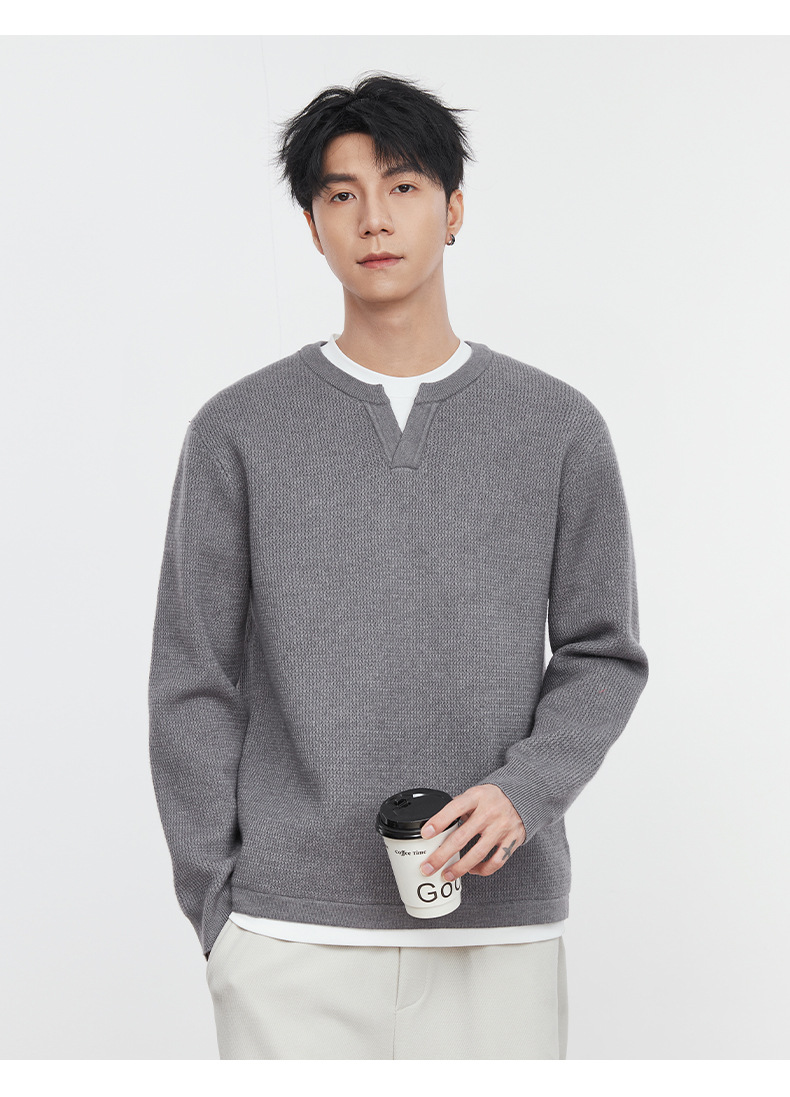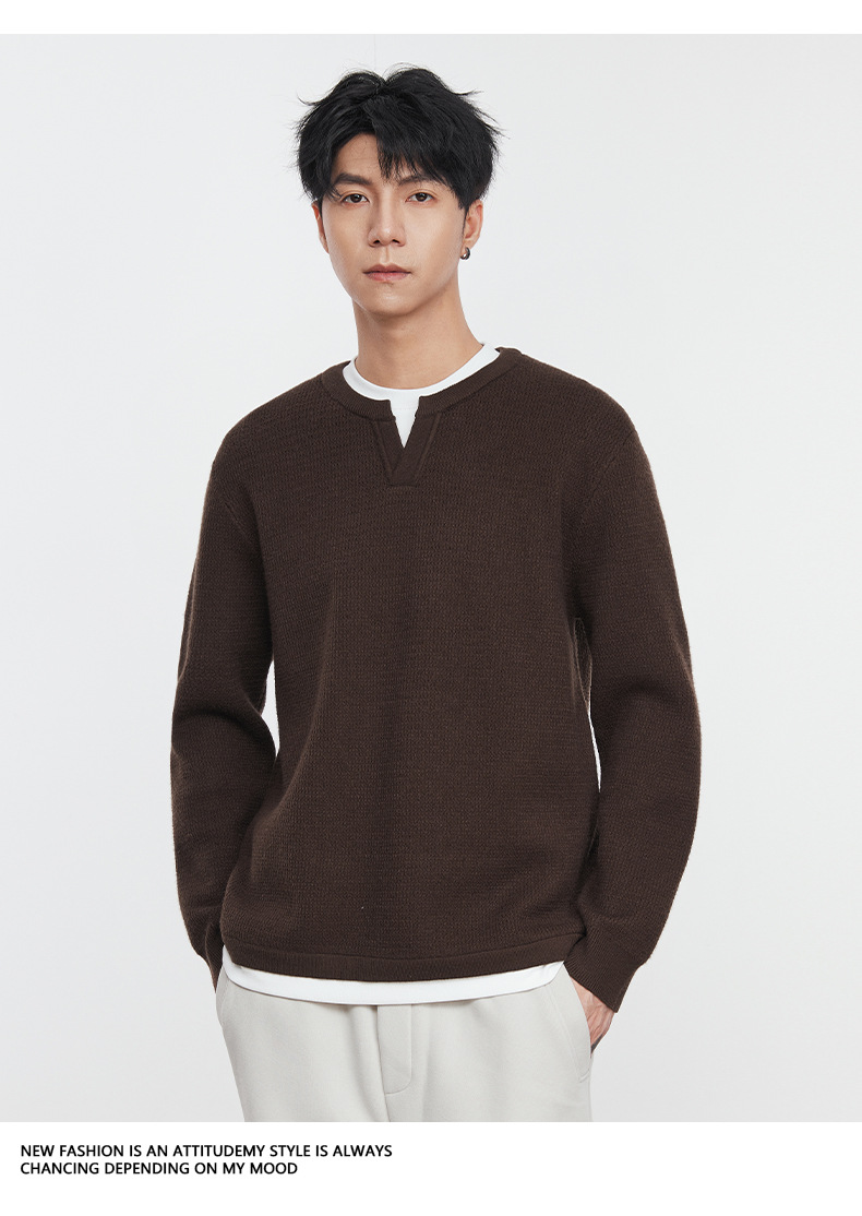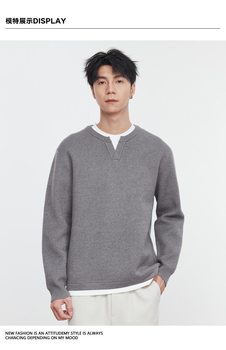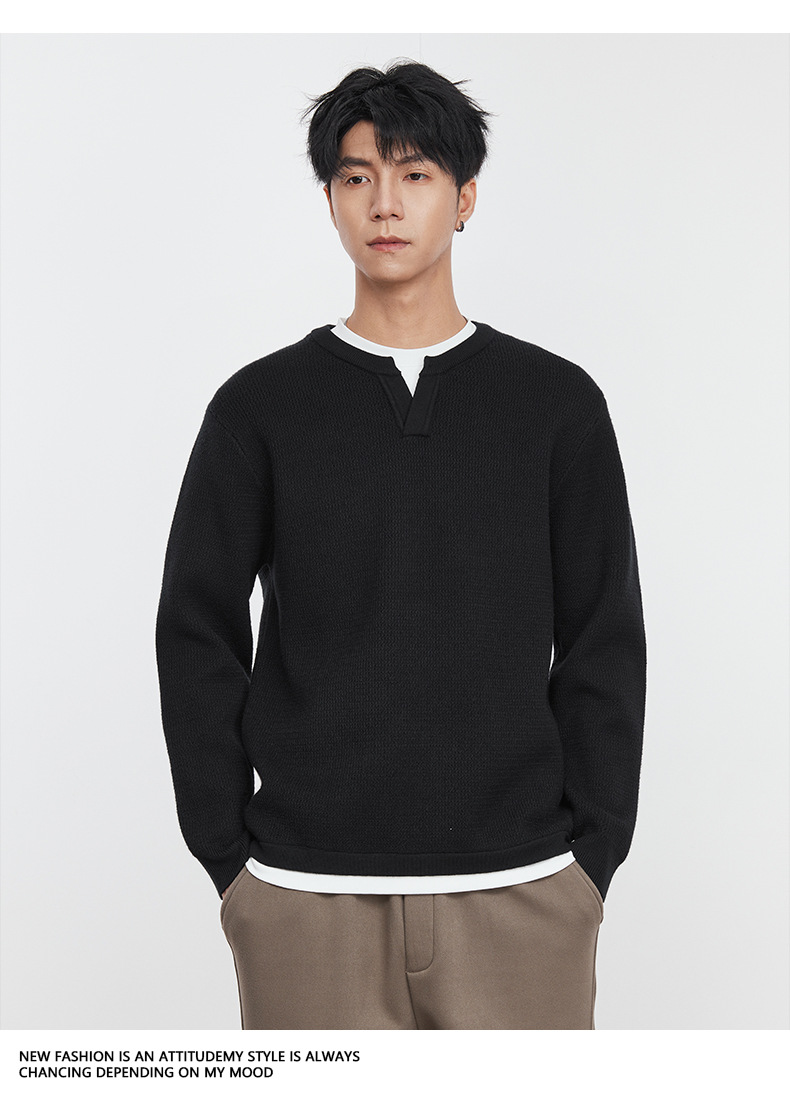 男士秋冬自發熱假兩件寬鬆針織毛衣